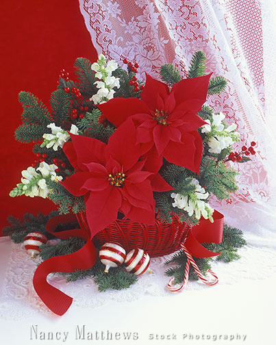 Description: two poinsettias in a basket