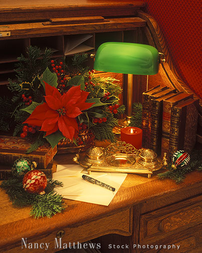 Description: antique desk with christmas items