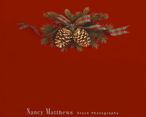 Description: pine cones with ribbon on red