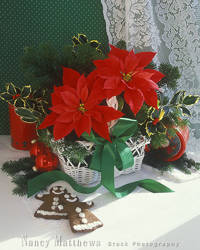 Description: poinsettia basket with gingerbread men