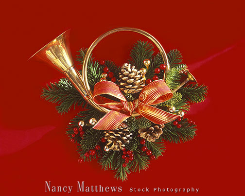 Description: horn with christmas greens