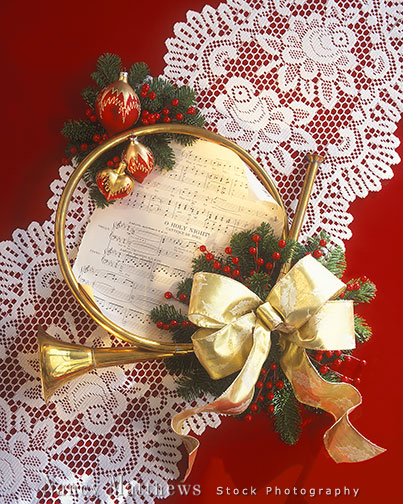 Description: sheet music and horn