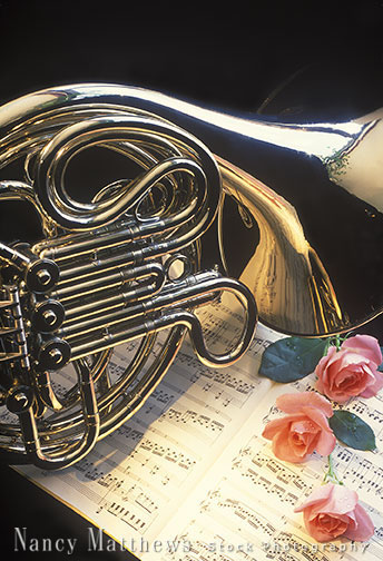 Description: french horn with pink roses