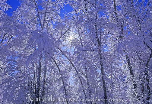 Description: snowy trees with sun burst