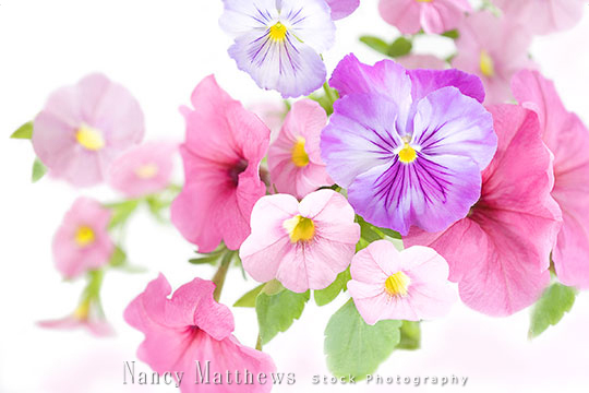 Description: lavender pansies and pink petunias
