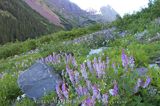 Description: lavender wildflowers in the rockies