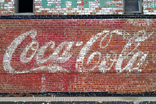 Description: coca-cola sign on an old building