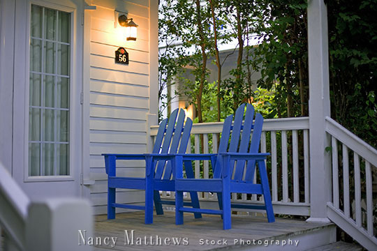 Description: blue chairs on a porch