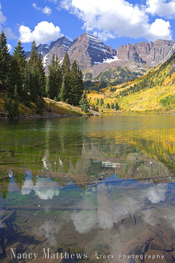 Description: reflections of maroon bells in the fall