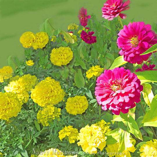 Description: garden of zinnias and marigolds