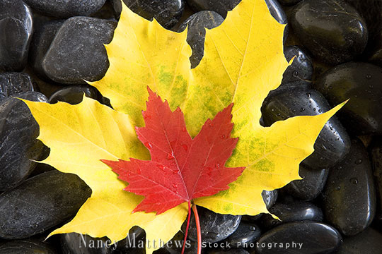 Description: maple leaves on black stones