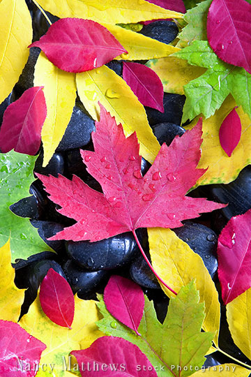 Description: fall leaves on black stones