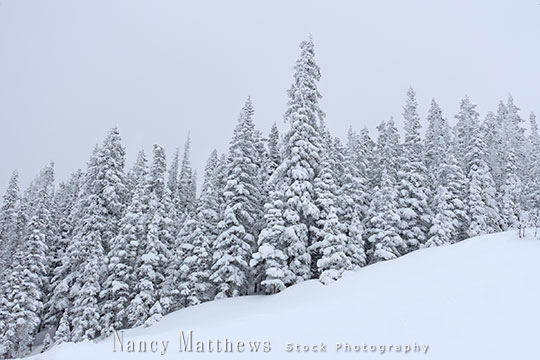 Description: mountain snow on pine trees