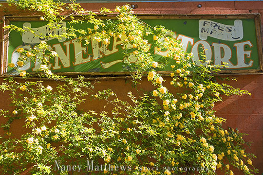 Description: vintage sign with yellow roses