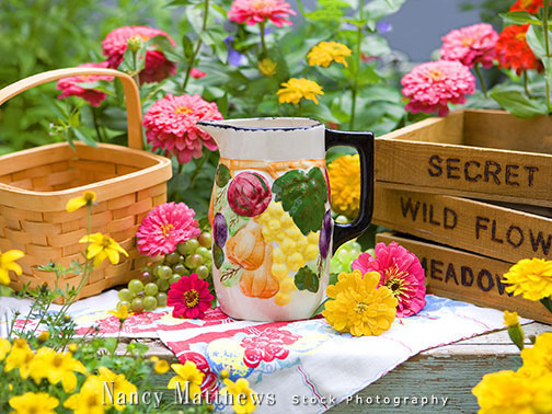 Description: pitcher in a summer garden