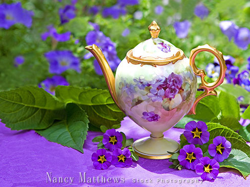 Description: teapot with lavender blossoms