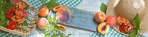 Description: peaches and flowers with a garden hat