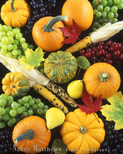 Description: pumpkins and fall fruit
