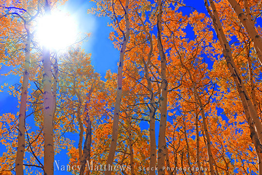 Description: sunburst through the aspens