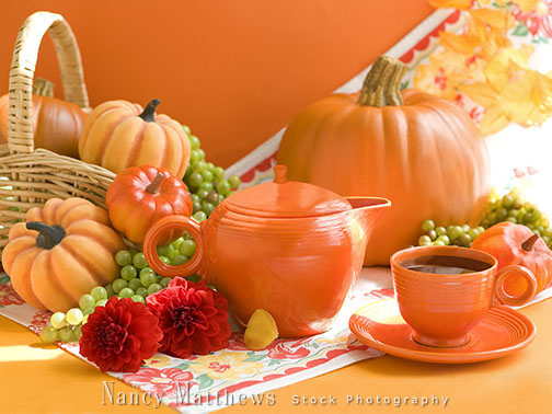 Description: teapot with fall fruit