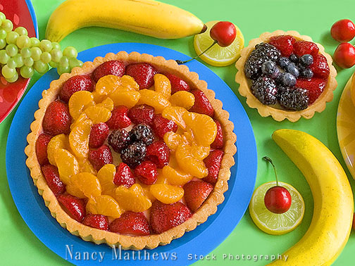 Description: fruit tart with plates of fruit