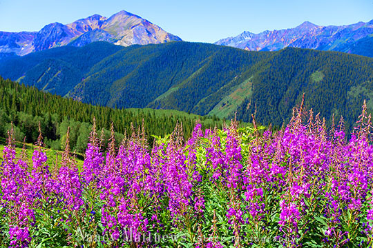 Description: field of fireweed in the mountains