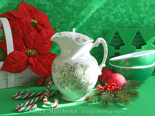 Description: teapot with christmas poinsettias