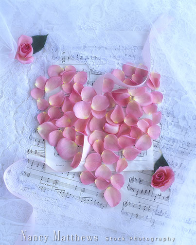 Description: heart of rose petals with sheet music