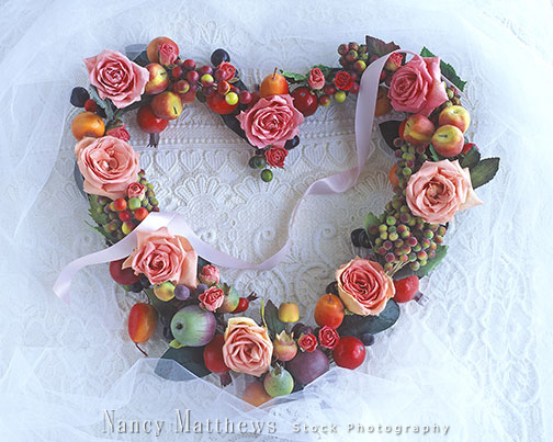 Description: heart wreath with roses and fruit