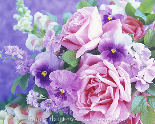 Description: lavender roses and pansies
