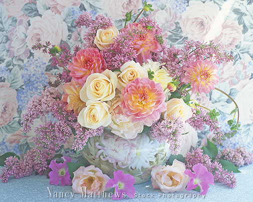 Description: floral with roses and dahlias