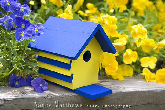 Keywords: birdhouses pansies