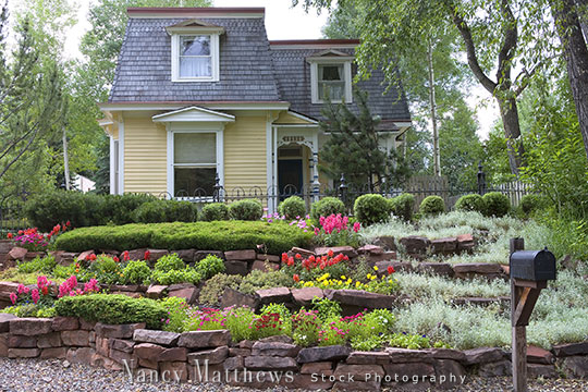 Description: victorian house with a rock garden