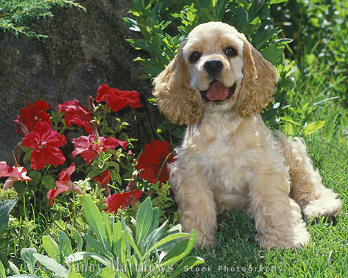 Description: cocker spaniel in a garden