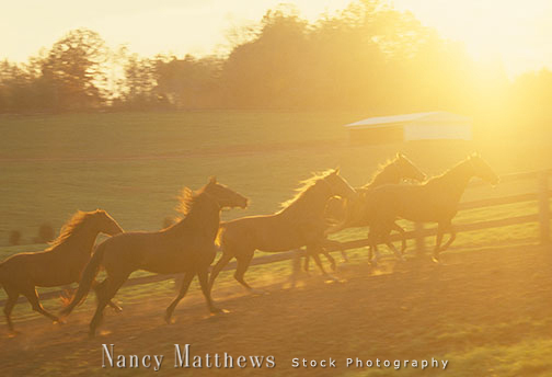 Description: running horses in golden light